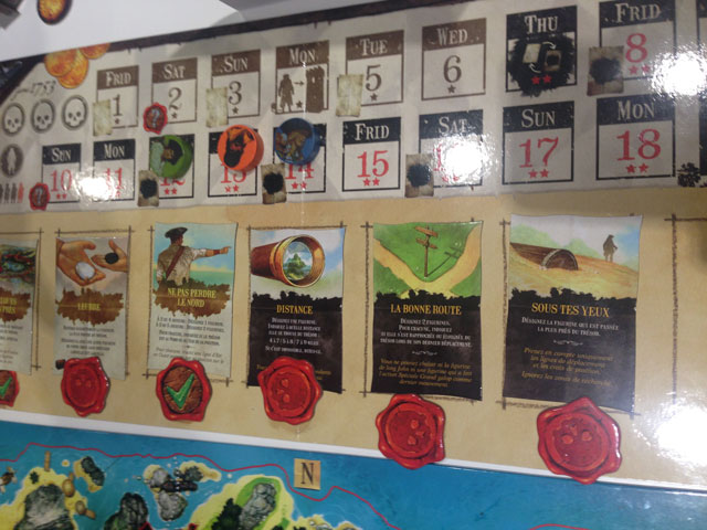 Au bout de 17 jours (tours), le célèbre cuisinier pourra s’échapper de prison et rejoindre au plus vite son butin, tout en faisant attention de ne pas mettre les autres pirates sur la bonne piste. Pour connaitre davantage les règles du jeu, je vous invite à consulter le site de Matagot.